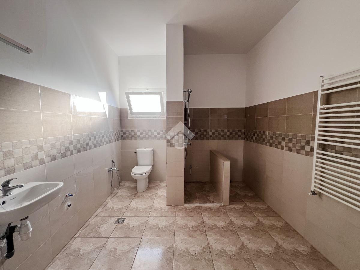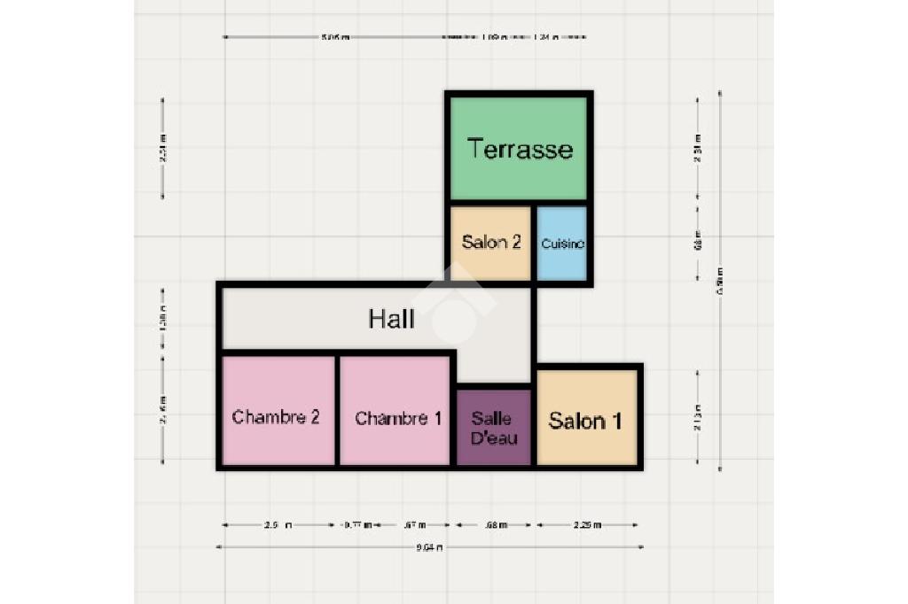 Cet appartement occupe le premier étage d'une résidence. La partie jour comprend un salon qui permet d'agencer un salon et une salle à manger. Une cuisine aménagée. Dans la partie nuit, il y a deux chambres à coucher qui partagent une salle de douche.