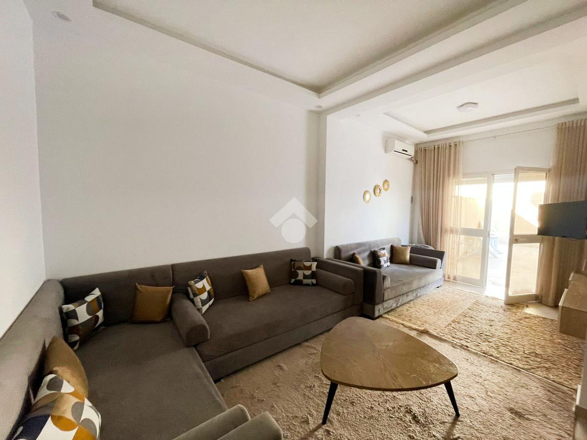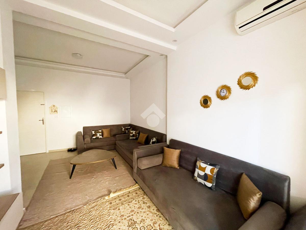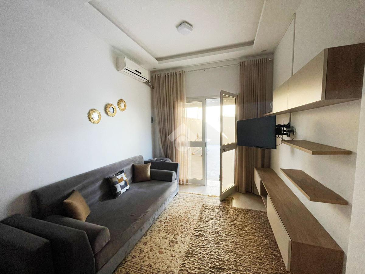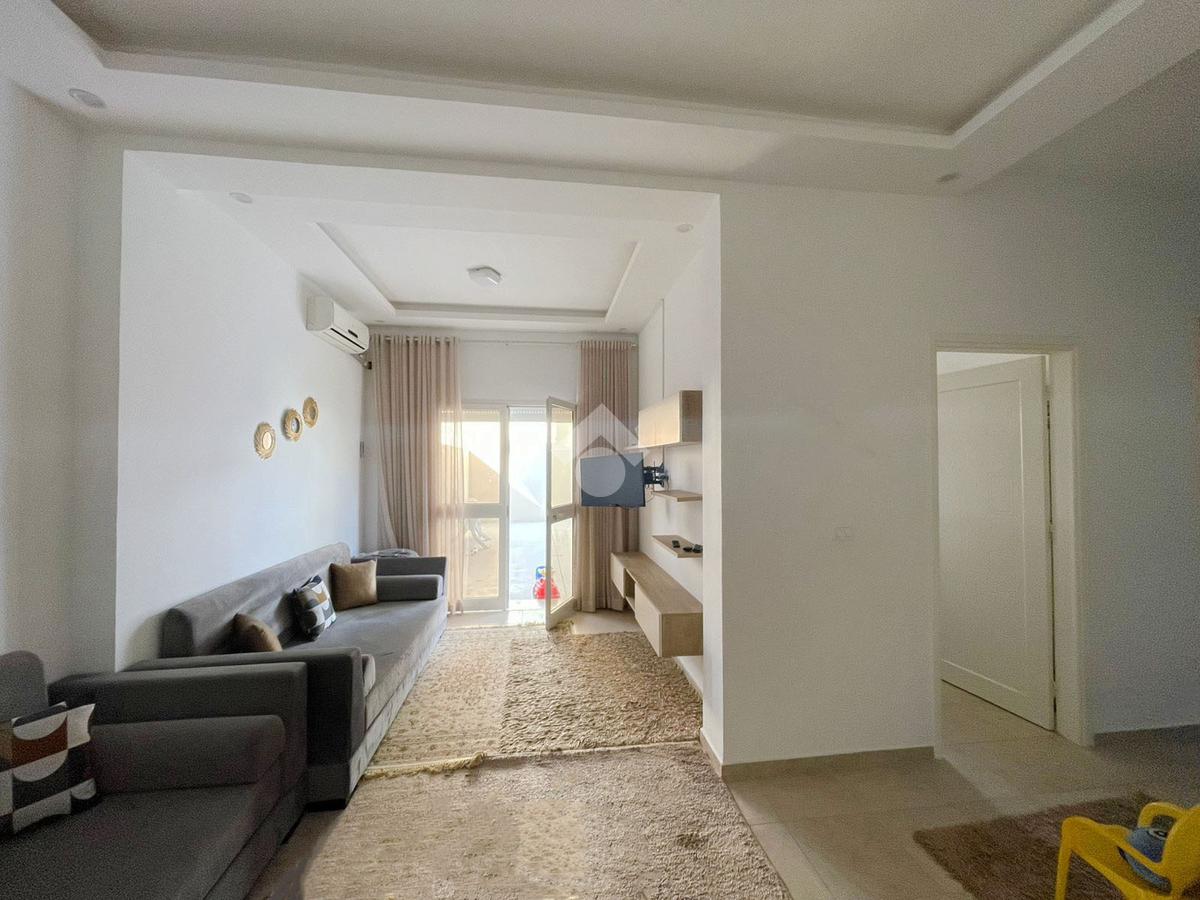 Cet appartement se trouve au RDC d’une résidence. La partie jour comprend un salon et une cuisine aménagée. La partie nuit comprend deux chambres à coucher et une salle de douche.